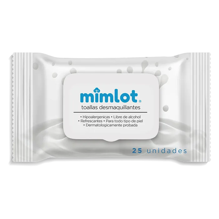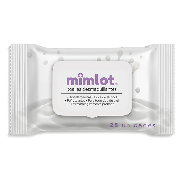 Toallas desmaquillantes Mimlot, hipoalergénicas, libres de alcohol, refrescantes, para todo tipo de piel, dermatológicamente probadas, 25 unidades.